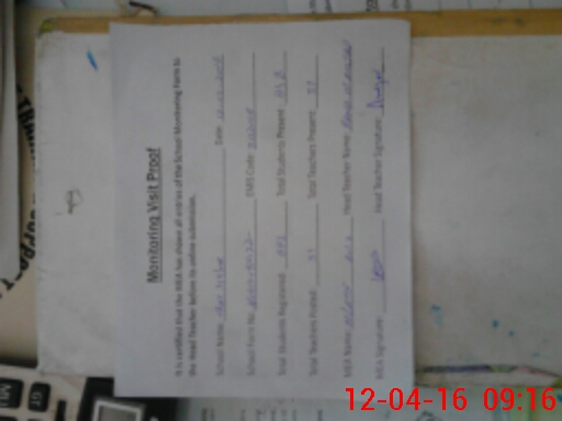 | Attendance Register | Head Teacher | MEA with School | Visit Proof |
