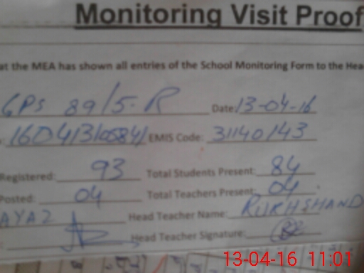 | Attendance Register | Head Teacher | MEA with School | Visit Proof |