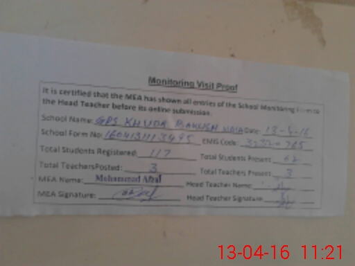 | EMIS Code: 32320765 | Name of School: GPS KHUDA BAKHSH WALA | |||