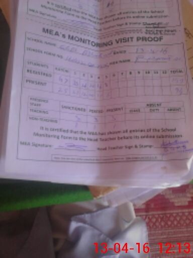 | Attendance Register | Head Teacher | MEA with School | Visit Proof |