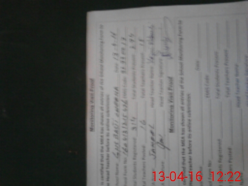 | Monitoring Date: 13-04-2016 | Start Time: 13-04-2016 11:57 AM | End Time: 13-04-2016 12:24 PM | Name of MEA: Ja**** Hu**** | |