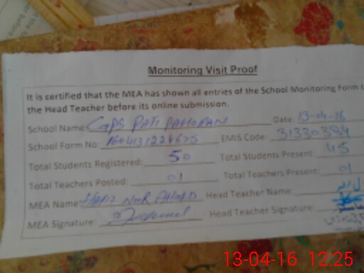 | EMIS Code: 31330384 | Name of School: GPS PATI PAHORAN | |||