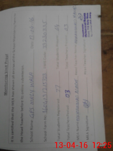 | Certified that this School was Inspected by the Undersigned MEA/DMO Today and the Information Stated Above is as Per Record. | |||||