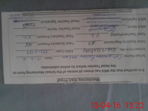 | Attendance Register | Head Teacher | MEA with School | Visit Proof |