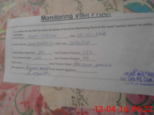 | EMIS Code: 31130338 | Name of School: GGPS CHAK NO 273 HR | |||