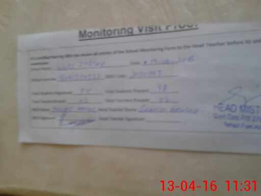 | Attendance Register | Head Teacher | MEA with School | Visit Proof |