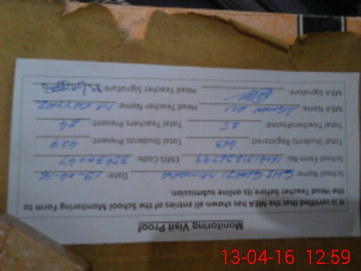 | Certified that this School was Inspected by the Undersigned MEA/DMO Today and the Information Stated Above is as Per Record. | |||||