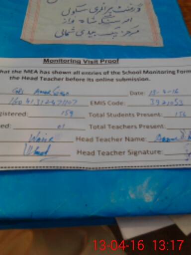 | Attendance Register | Head Teacher | MEA with School | Visit Proof |