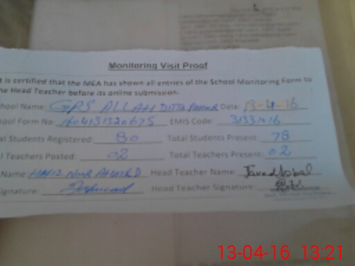 | EMIS Code: 31331016 | Name of School: GPS ALLAH DITA PAHOOR | |||