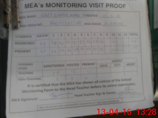 | Attendance Register | Head Teacher | MEA with School | Visit Proof |