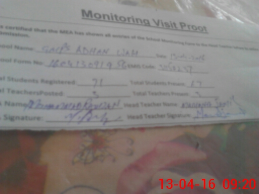 | EMIS Code: 31150237 | Name of School: GMPS ADHAN WAH | |||