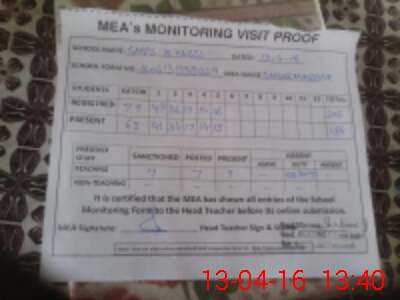 | Attendance Register | Head Teacher | MEA with School | Visit Proof |