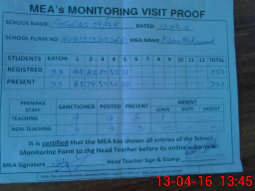 | Attendance Register | Head Teacher | MEA with School | Visit Proof |
