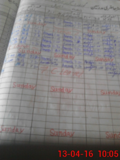 | CNIC | Full Name | Designation | R/C | Absence During Last Calender Month |