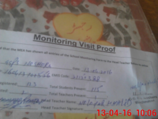 | Attendance Register | Head Teacher | MEA with School | Visit Proof |