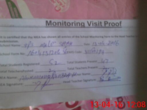 | Attendance Register | Head Teacher | MEA with School | Visit Proof |
