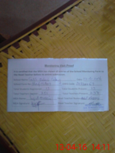 | Attendance Register | Head Teacher | MEA with School | Visit Proof |
