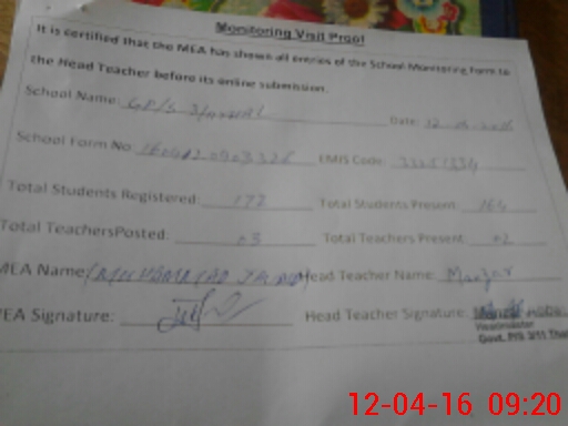 | Attendance Register | Head Teacher | MEA with School | Visit Proof |