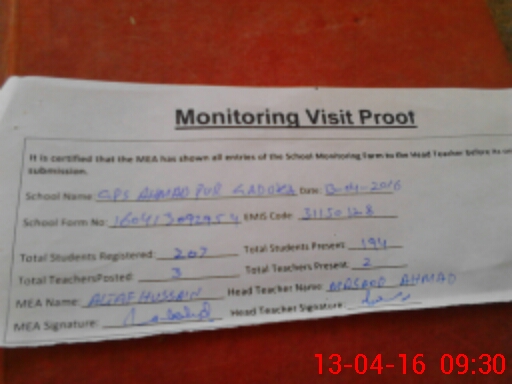 | EMIS Code: 31150128 | Name of School: GPS AHMAD PUR GADHUKA | |||
