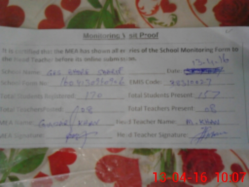 | EMIS Code: 38310027 | Name of School: GES BHORE SHARIF | |||