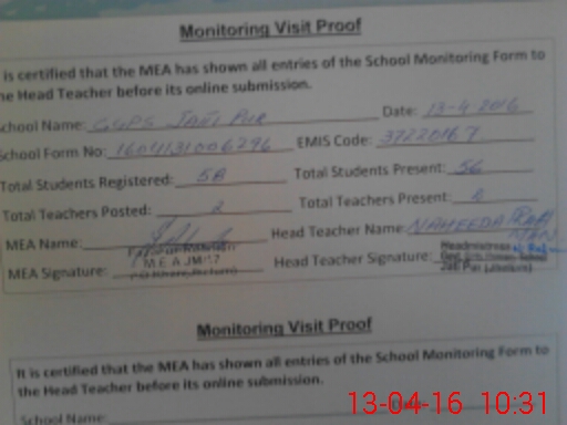 | Attendance Register | Head Teacher | MEA with School | Visit Proof |