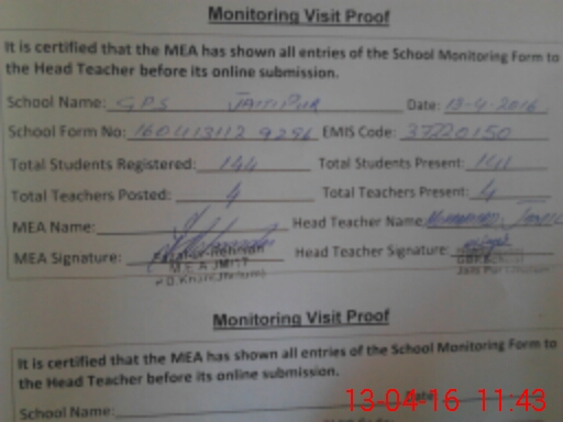 | Attendance Register | Head Teacher | MEA with School | Visit Proof |
