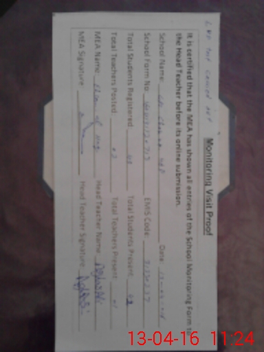 | Certified that this School was Inspected by the Undersigned MEA/DMO Today and the Information Stated Above is as Per Record. | |||||