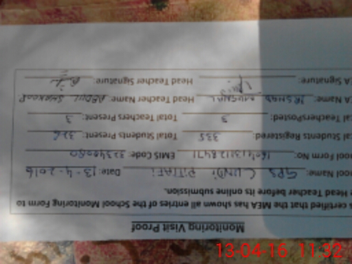 | Certified that this School was Inspected by the Undersigned MEA/DMO Today and the Information Stated Above is as Per Record. | |||||