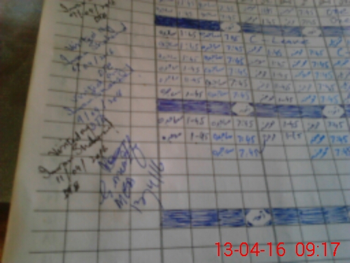 | Monitoring Date: 13-04-2016 | Start Time: 13-04-2016 08:57 AM | End Time: 13-04-2016 09:18 AM | Name of MEA: GH**** MU**** BH**** (R**** | |