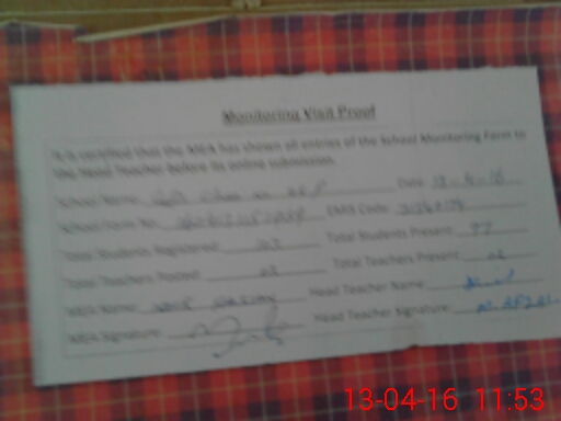 | Attendance Register | Head Teacher | MEA with School | Visit Proof |