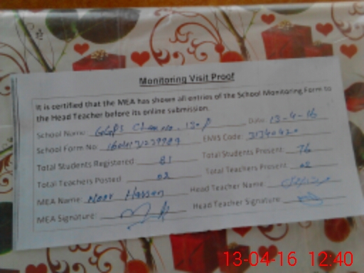 | Certified that this School was Inspected by the Undersigned MEA/DMO Today and the Information Stated Above is as Per Record. | |||||