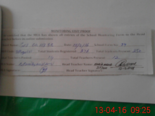| Attendance Register | Head Teacher | MEA with School | Visit Proof |