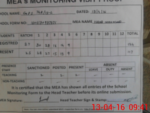 | EMIS Code: 36420667 | Name of School: GPS 74-A/15-L, KHANEWAL | |||