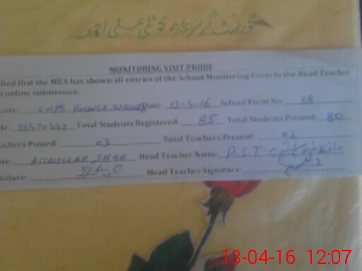 | Certified that this School was Inspected by the Undersigned MEA/DMO Today and the Information Stated Above is as Per Record. | |||||