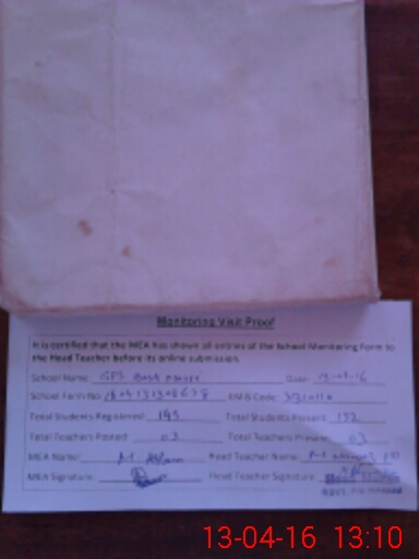 | Attendance Register | Head Teacher | MEA with School | Visit Proof |