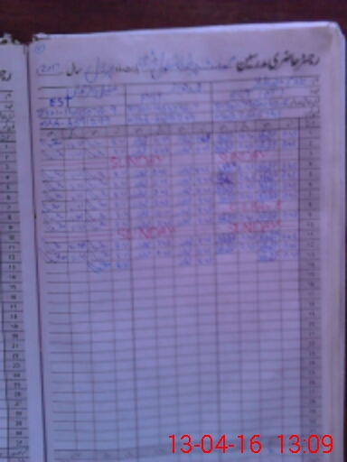 | CNIC | Full Name | Designation | R/C | Absence During Last Calender Month |