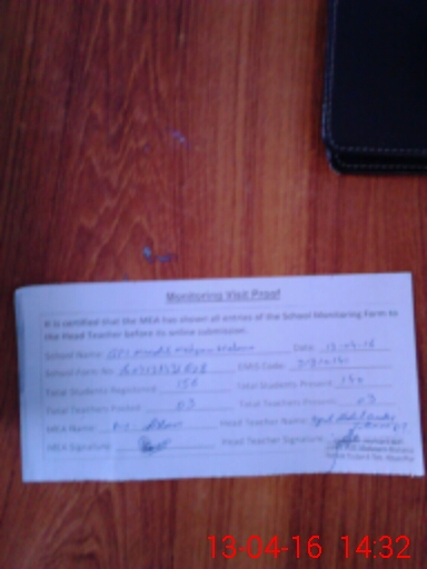| Certified that this School was Inspected by the Undersigned MEA/DMO Today and the Information Stated Above is as Per Record. | |||||