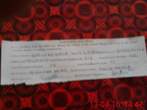 | Attendance Register | Head Teacher | MEA with School | Visit Proof |
