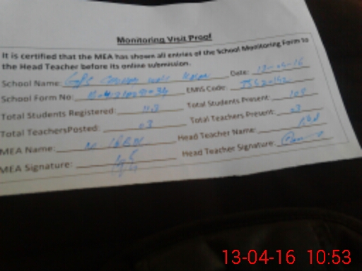 | Certified that this School was Inspected by the Undersigned MEA/DMO Today and the Information Stated Above is as Per Record. | |||||