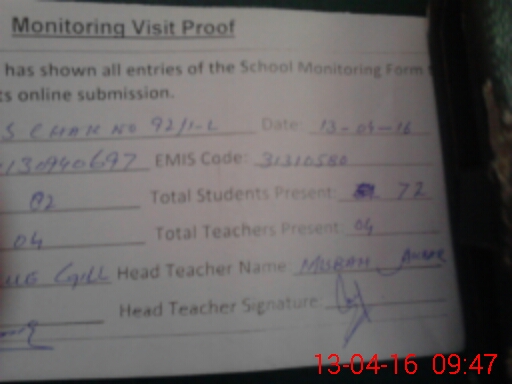 | Attendance Register | Head Teacher | MEA with School | Visit Proof |