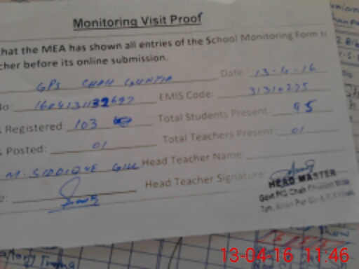 | Attendance Register | Head Teacher | MEA with School | Visit Proof |