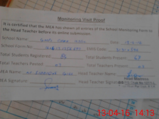 | Certified that this School was Inspected by the Undersigned MEA/DMO Today and the Information Stated Above is as Per Record. | |||||