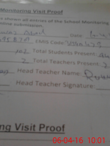 | Attendance Register | Head Teacher | MEA with School | Visit Proof |