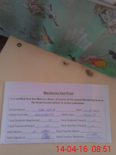 | Attendance Register | Head Teacher | MEA with School | Visit Proof |