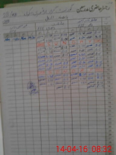 | CNIC | Full Name | Designation | R/C | Absence During Last Calender Month |