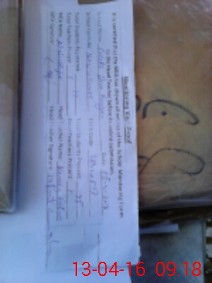 | Monitoring Date: 13-04-2016 | Start Time: 13-04-2016 08:53 AM | End Time: 13-04-2016 09:34 AM | Name of MEA: MU**** SI**** | |
