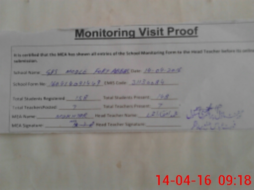 | Attendance Register | Head Teacher | MEA with School | Visit Proof |