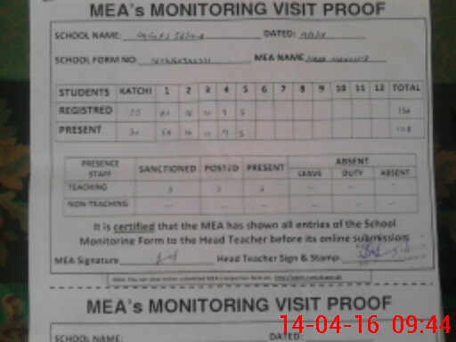 | Attendance Register | Head Teacher | MEA with School | Visit Proof |
