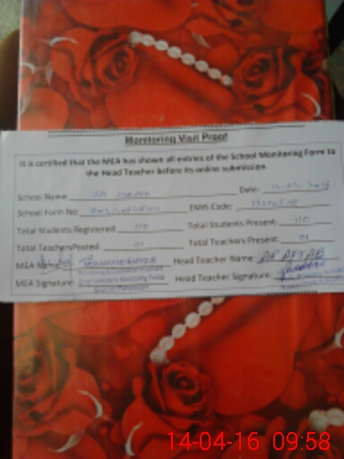 | Attendance Register | Head Teacher | MEA with School | Visit Proof |