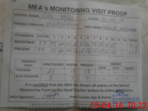 | Certified that this School was Inspected by the Undersigned MEA/DMO Today and the Information Stated Above is as Per Record. | |||||